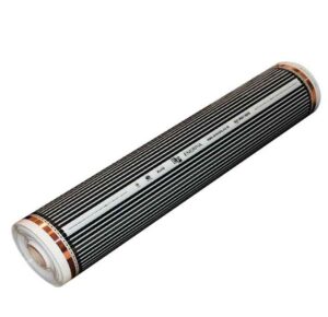 Когда нужно купить недорогой, надежный и безопасный теплый пол в Киеве, кабель – отличный вариант. - Нагревательная пленка. Самая тонкая система теплого пола – толщина всего 0,3мм. По конструкции – это полоски карбоновой пасты, размещенные между двумя медными шинами. Эта конструкция с двух сторон закрыта несколькими слоями прозрачного или полупрозрачного термостойкого полиэтилена. Нагревательная пленка значительно дешевле кабельных систем обогрева. Срок ее службы меньше, надежность ниже, монтаж сложнее. Подходит для установки под напольные покрытия, монтируемых методом сухого монтажа (в основном под ламинат). Купить теплый пол в Киеве на основе нагревательной пленки выгоднее всего, ведь в столице находятся основные склады. Подойдет такой подогрев пола тем, кому нужно сделать подогрев ламината максимально дешево.