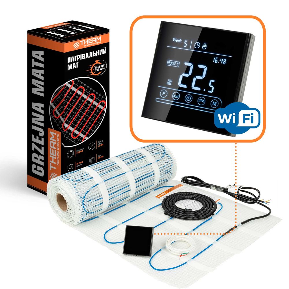 двухжильный нагревательный мат Therm FEP-200W + сенсорный программируемый WiFi терморегулятор