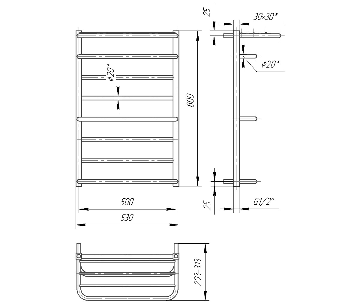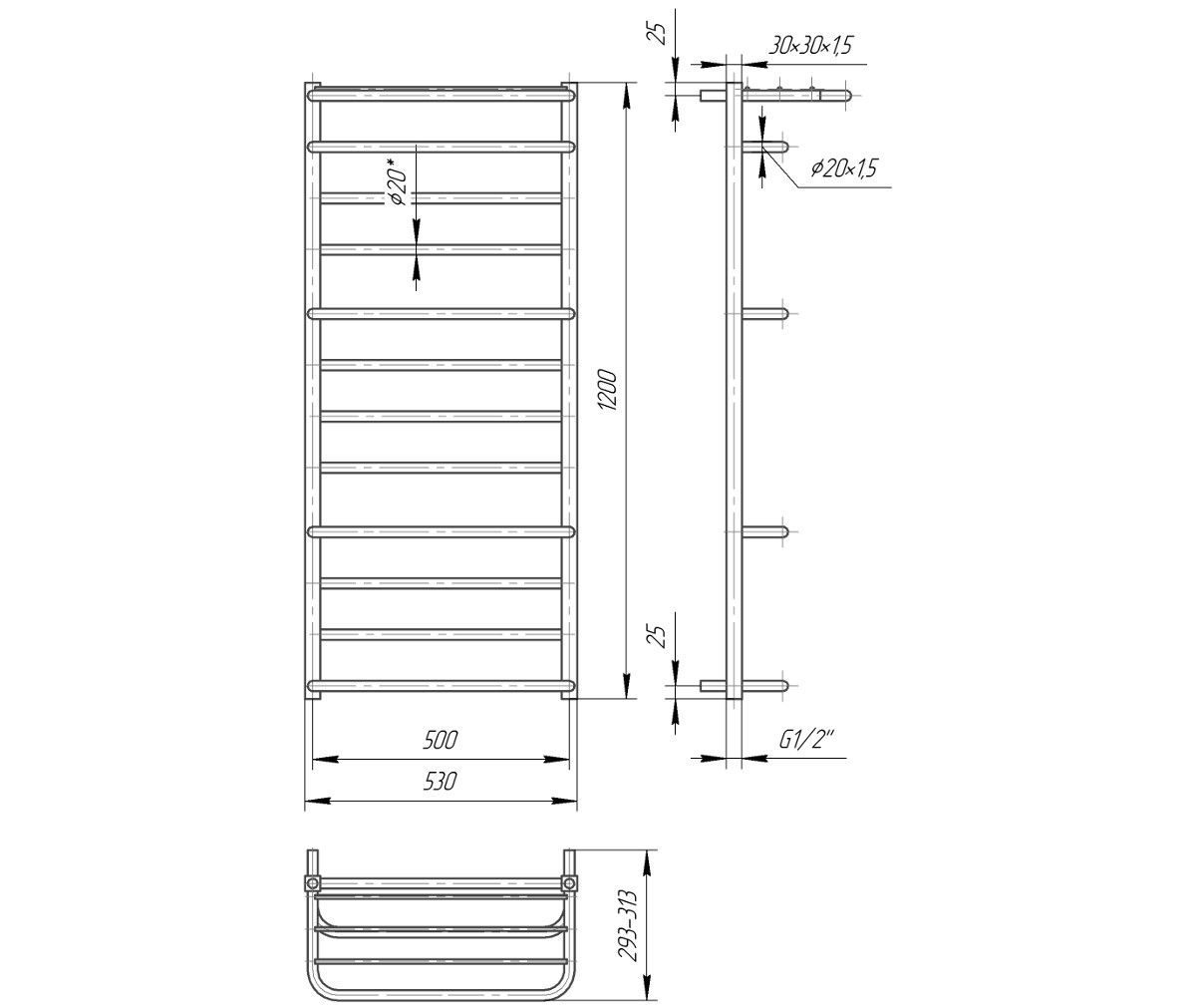 Водяной полотенцесушитель из нержавеющей стали Mario Люксор
