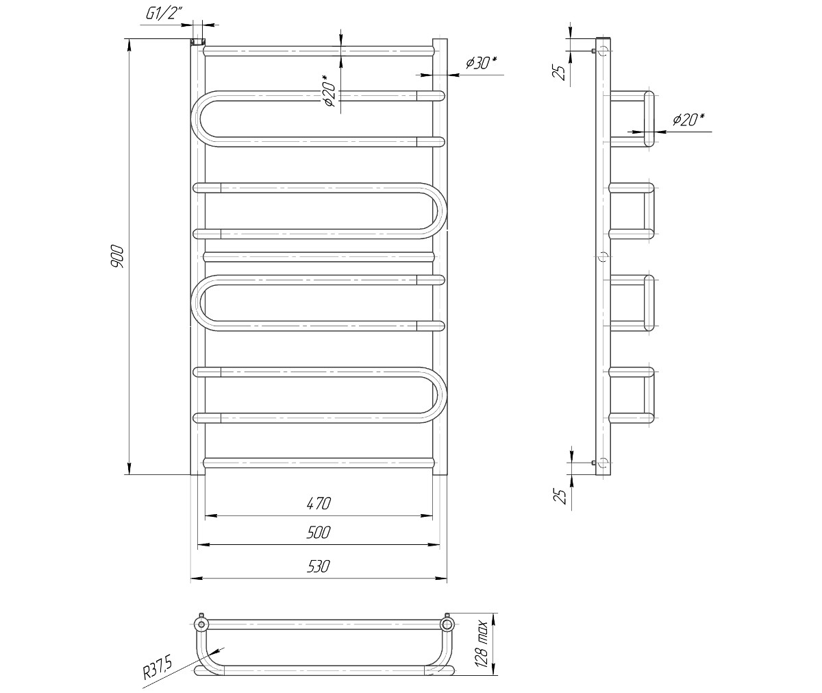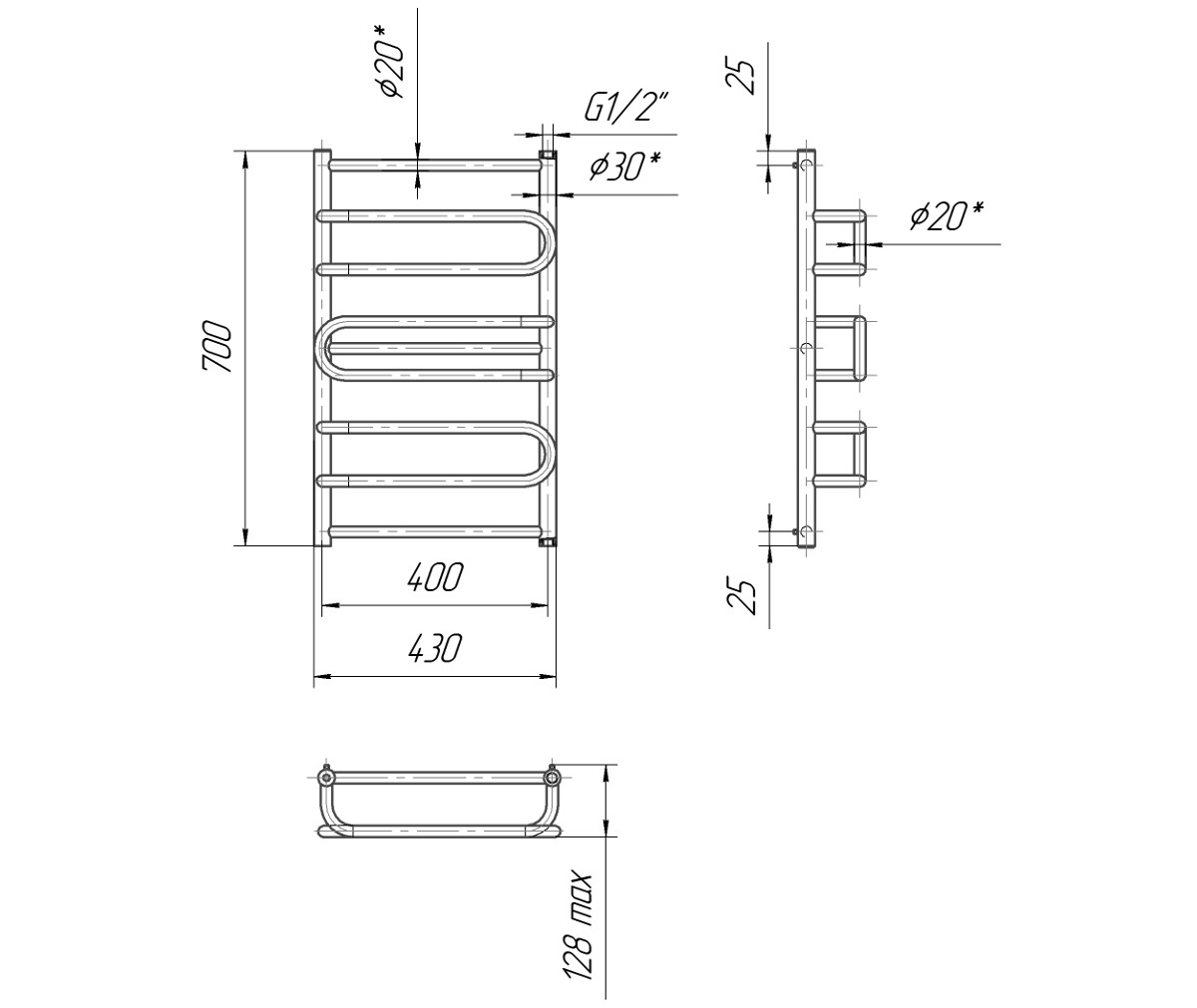 Водяной полотенцесушитель из нержавеющей стали Mario Ница