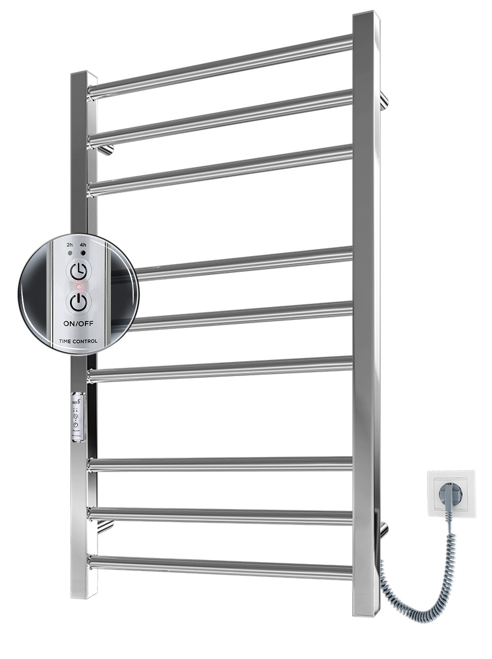 Электрический полотенцесушитель из нержавеющей стали с сухим нагревательным элементом Mario Премиум Классик-IT 800×500 с таймером