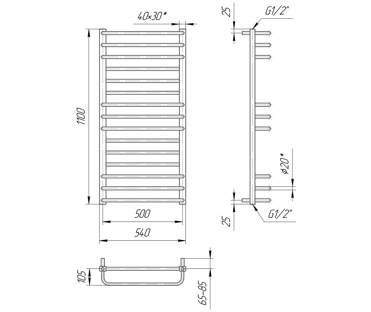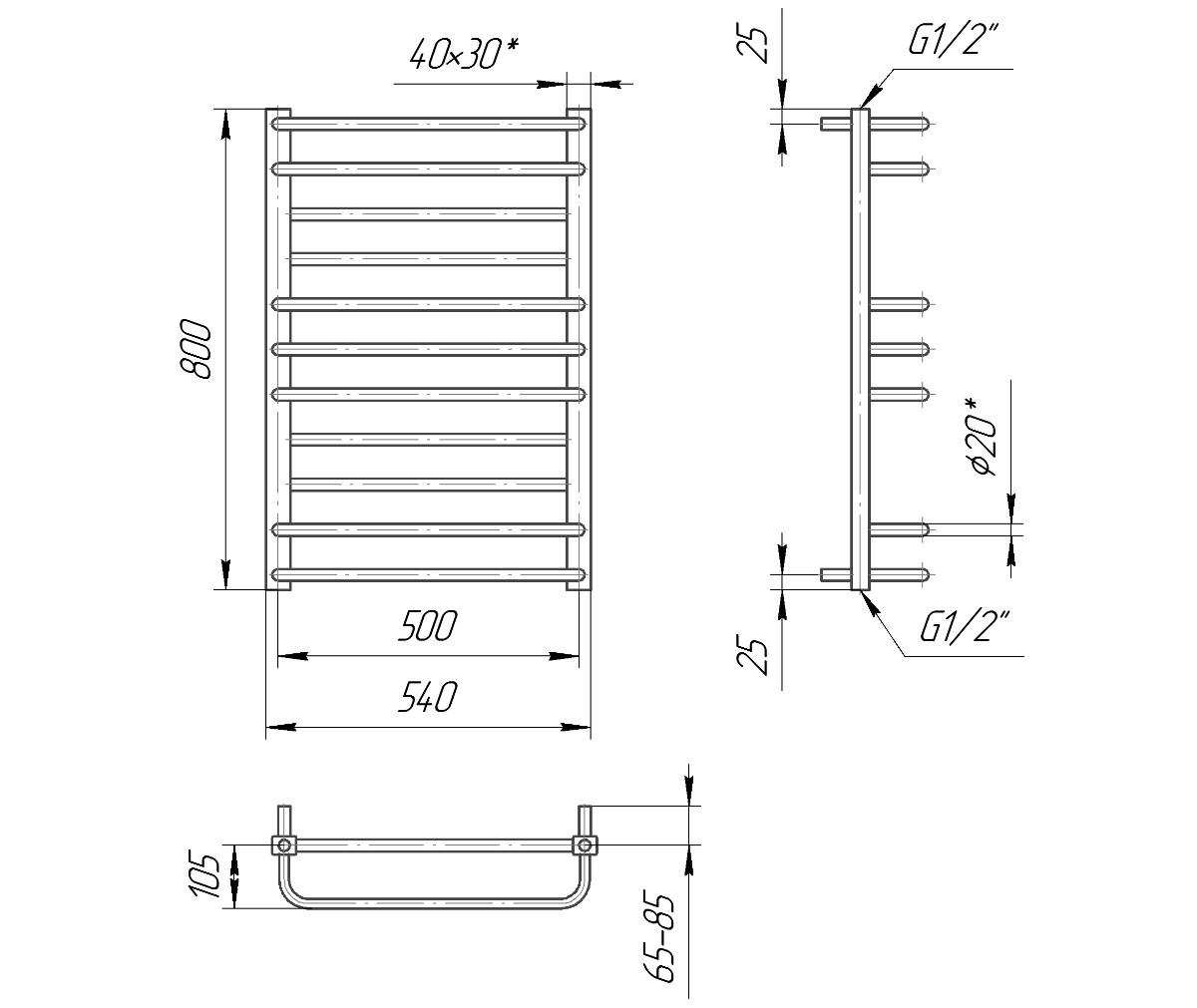 Водяной полотенцесушитель из нержавеющей стали Mario Премиум Люкс