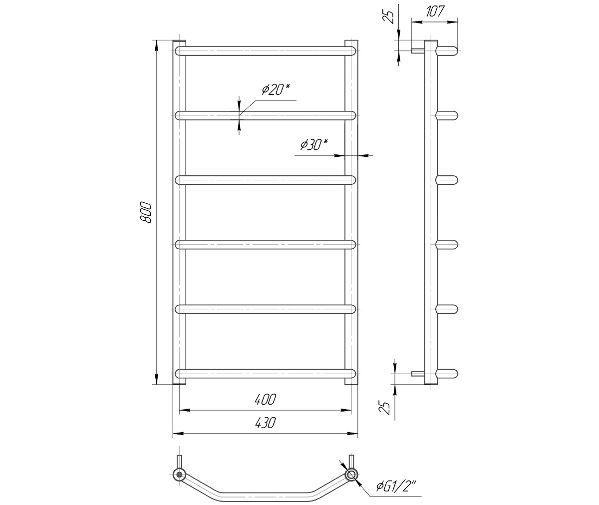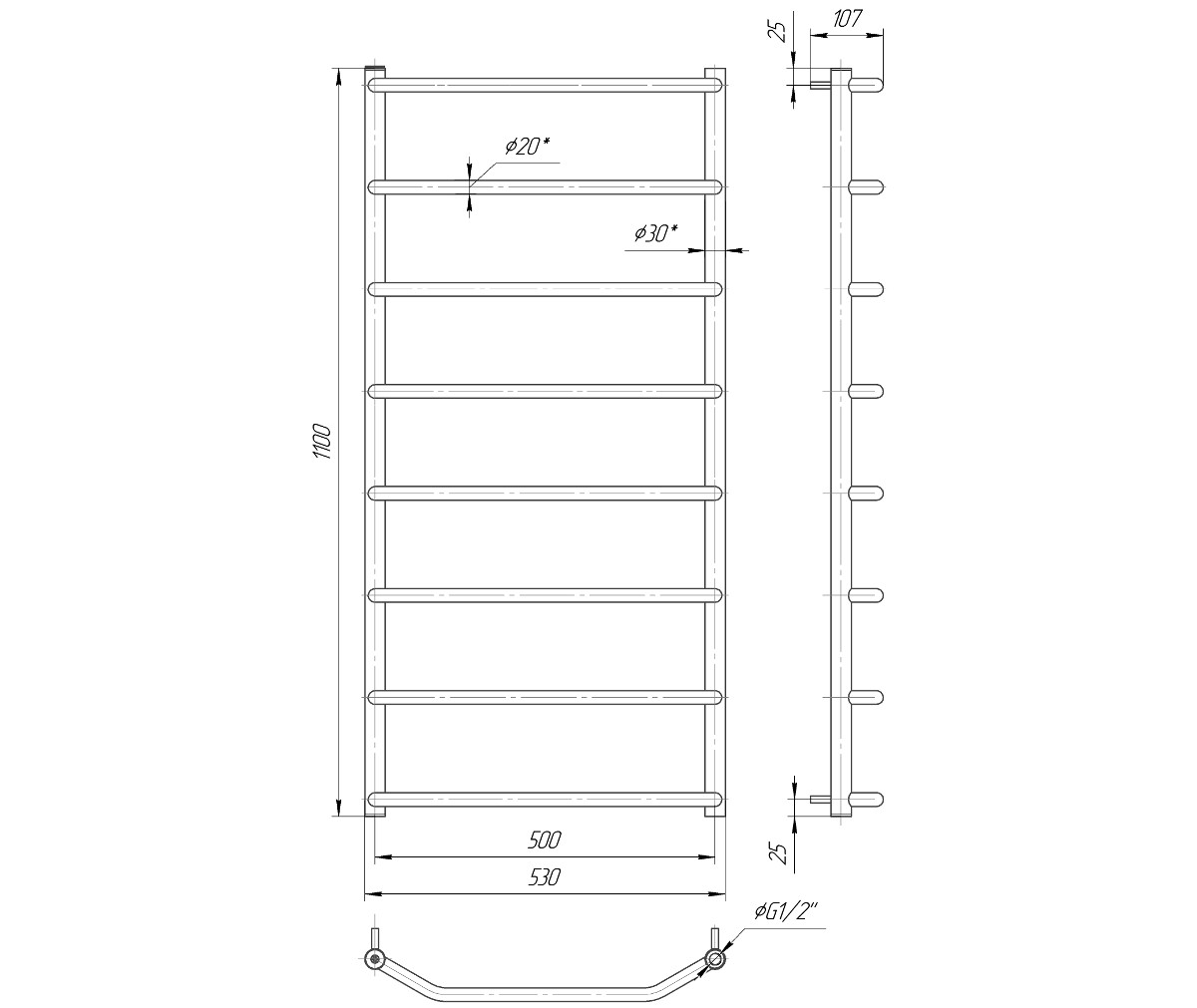 Водяной полотенцесушитель из нержавеющей стали Mario Трапеция HP