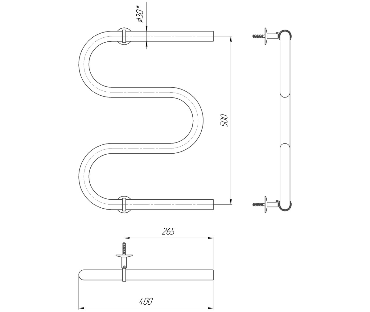 Полотенцесушитель Змейка 30 производственного предприятия Mario изготовлен из нержавеющей стали АІSI 304 может быть оборудован электрическим теном.