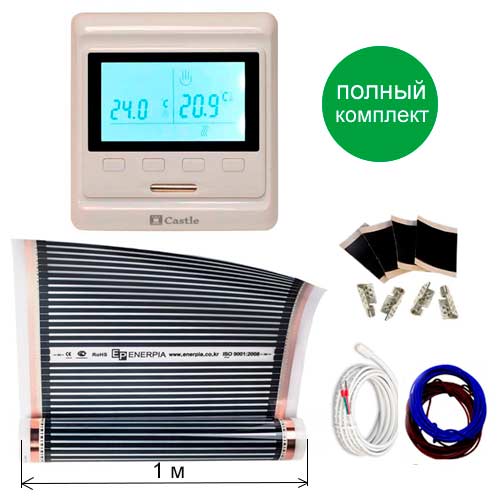 Пленочный теплый пол Enerpia EP 220W EP100 (100см)+ программируемый терморегулятор с двумя датчиками (пол + воздух)