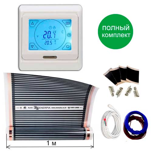 Пленочный теплый пол Enerpia EP 220W EP100 (100см)+ программируемый терморегулятор с сенсорным экраном