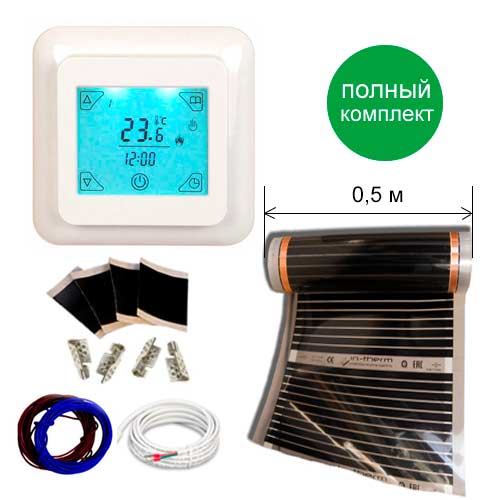 Пленочный теплый пол IN-Therm 220W T305 (50см)+ программируемый терморегулятор с сенсорным экраном T8