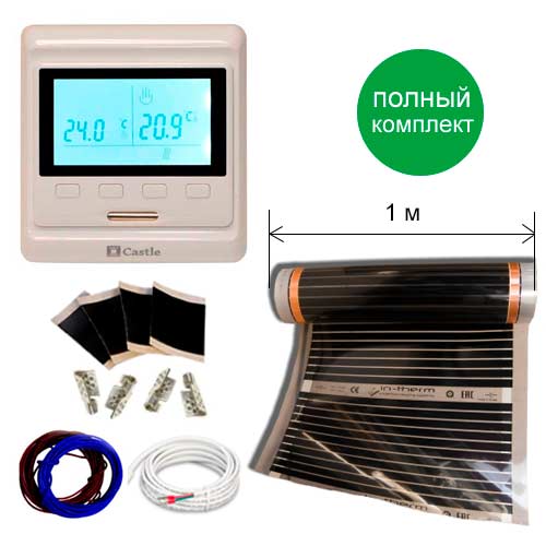 Комплект теплої підлоги - Плівка Korea Heat, програмований терморегулятор E91, монтажні набори та провід