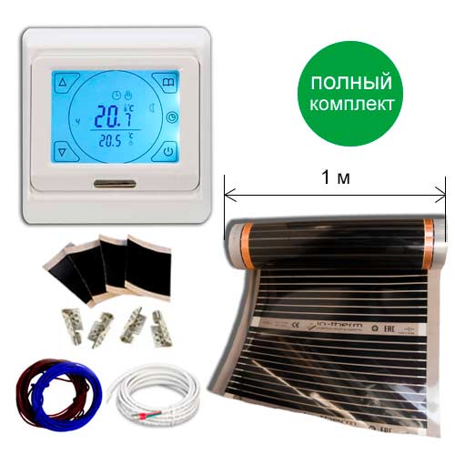 Пленочный теплый пол IN-Therm 220W T310 (100см)+ программируемый терморегулятор с сенсорным экраном