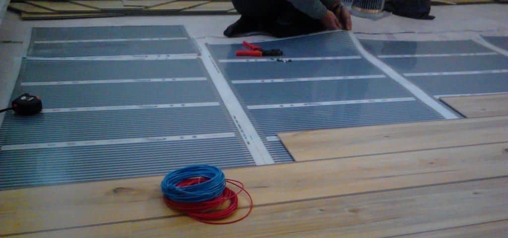 - С помощью инфракрасной пленки. Это наиболее недорогой и простой способ устройства теплого пола под ламинат. К преимуществам относится доступность, дешевизна, простота монтажа, высокая теплоотдача, быстрый нагрев. К недостаткам можно отнести относительно невысокий срок службы – 10-15лет.